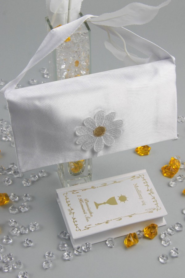 La Première Communion est un moment pour lequel chaque enfant se prépare avec grande excitation. Les parents vivent cette journée tout aussi intensément et s'assurent que leurs enfants, en plus de la préparation spirituelle essentielle, soient impressionnants, mais aussi modestes. Un ajout idéal à la tenue de communion d'une fille sera les sacs de communion disponibles dans notre assortiment. Vous trouverez une variété de modèles - sous la forme d'un tonneau, d'une pochette et sous la forme d'une enveloppe avec un rabat. En plus de la forme du sac à main, vous pouvez également choisir le matériau et la méthode de fabrication de cet accessoire impressionnant, qui ajoutera de l'éclat à la fille en ce jour spécial, qui est sans aucun doute la Première Communion.