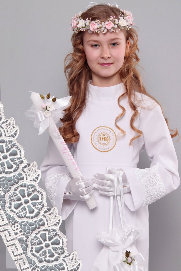 La communion est une partie intégrante de notre culture chrétienne. Pour une telle occasion, il est conseillé de choisir la parfaite aube ou robe de communion assortie, sans oublier les accessoires tels que les vêtements d'extérieur, le sac à main, les gants ou les guirlandes, qui s'intégreront parfaitement au style pour cette occasion spéciale. Les filles pendant la Communion devraient souligner leur beauté et leur pureté, ce qui se reflète dans la robe de Communion. Nous offrons une large sélection de robes et d'accessoires de communion de haute qualité pour les filles. Nous pensons qu'avec nos tenues, la Première Sainte Communion des filles se déroulera sans souci de l'apparence et de l'élégance. Nous faisons tout notre possible pour assurer une grande satisfaction non seulement pour l'enfant, mais aussi pour ses parents.