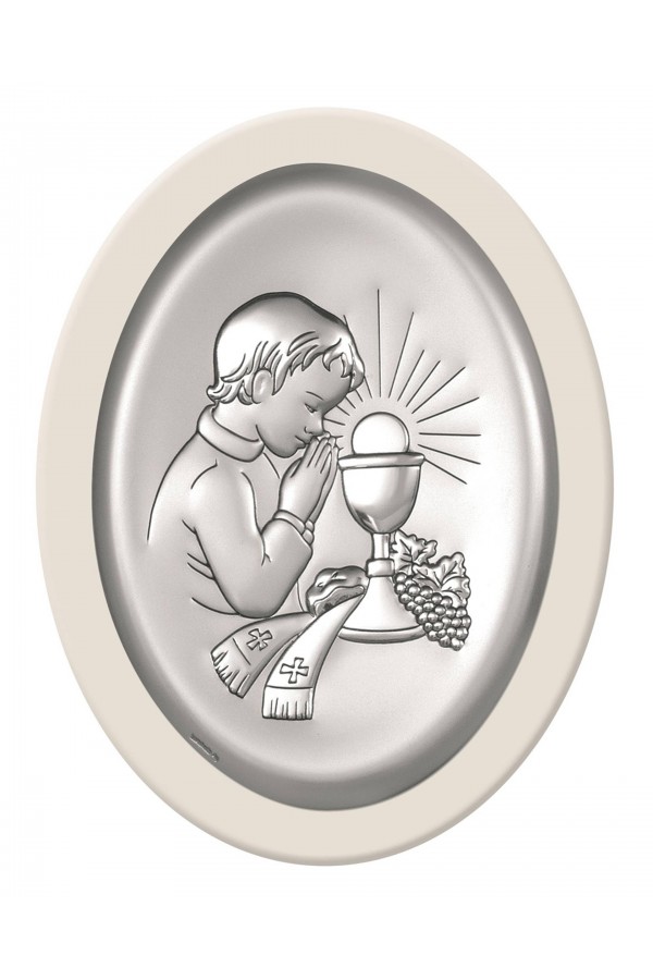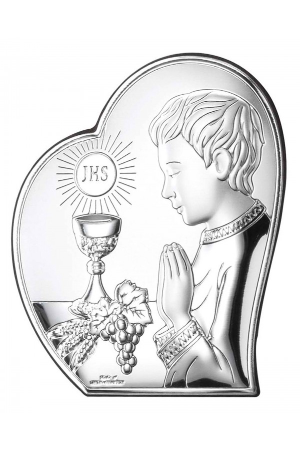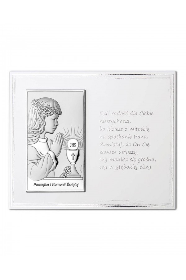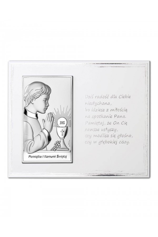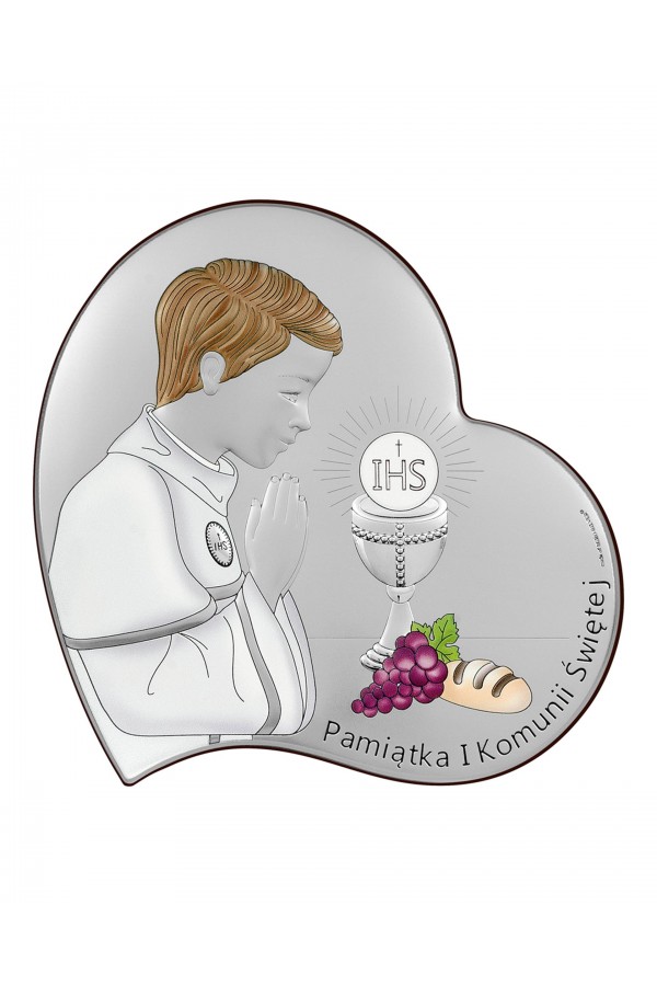 La Première Communion est un jour important dans la vie des enfants, qui sont accompagnés de leurs amis de l'école et de leur famille. Ce sacrement permet aux enfants de se sentir spéciaux, tous leurs proches se réjouissent et les soutiennent en ce jour. Lors de la cérémonie, les filles et les garçons qui reçoivent la communion sont habillés de robes de communion élégantes ou d'aubes, ce qui souligne la solennité de l'événement. Pour se souvenir de cette journée pour toujours, un cadeau courant offert aux enfants sont des images et des figurines en argent représentant des saints, ainsi que des albums et des cadres photo. Ces souvenirs comprennent des graphiques détaillés, ainsi que des gravures pour leur rappeler l'événement. Dans notre offre, vous pouvez trouver de nombreux motifs de souvenirs de Première Communion également avec des motifs d'enfants, d'hostie ou de calice.