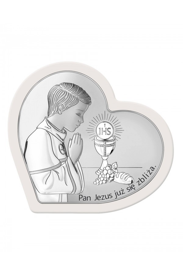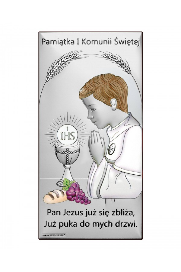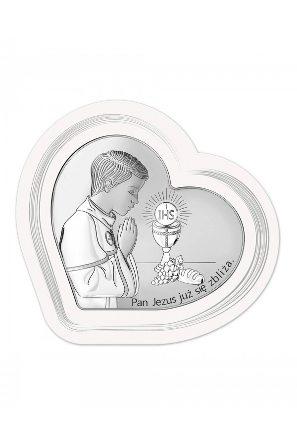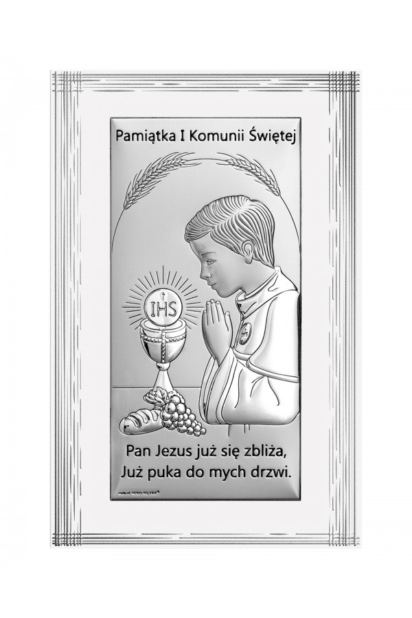 La Première Communion est un jour important dans la vie des enfants, qui sont accompagnés de leurs amis de l'école et de leur famille. Ce sacrement permet aux enfants de se sentir spéciaux, tous leurs proches se réjouissent et les soutiennent en ce jour. Lors de la cérémonie, les filles et les garçons qui reçoivent la communion sont habillés de robes de communion élégantes ou d'aubes, ce qui souligne la solennité de l'événement. Pour se souvenir de cette journée pour toujours, un cadeau courant offert aux enfants sont des images et des figurines en argent représentant des saints, ainsi que des albums et des cadres photo. Ces souvenirs comprennent des graphiques détaillés, ainsi que des gravures pour leur rappeler l'événement. Dans notre offre, vous pouvez trouver de nombreux motifs de souvenirs de Première Communion également avec des motifs d'enfants, d'hostie ou de calice.